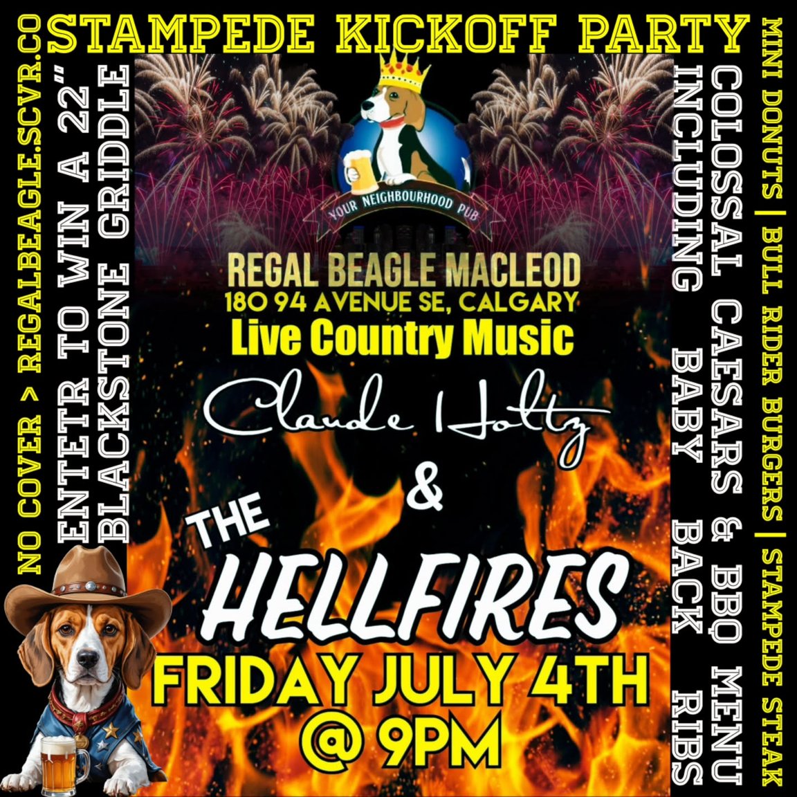Stampede Kickoff Party at the Regal Beagle Macleod (180, 94 Ave.SE) featuring Claude Holtz & the Hellfires FRI•JUL•4th•9PM - NO COVER! Reserve your spot > regalbeagle.scvr.co.